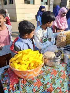 The School has a Big Play Ground, here arrangements are made for displaying items prepared by students and parents. The list of items is big. Like mouth watering “Pani Puri”, Delicious home made “Bhel”, and all time favorite “Dahi Samosa” and “Baraf Gola” and Sugarcane juice.