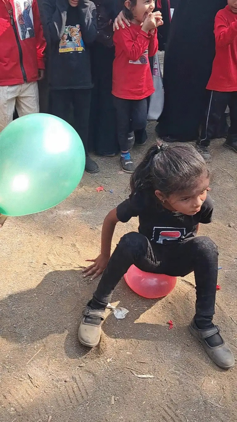 The pre-primary children are enjoying a different type of sport. Sit on the baloon to burst it,