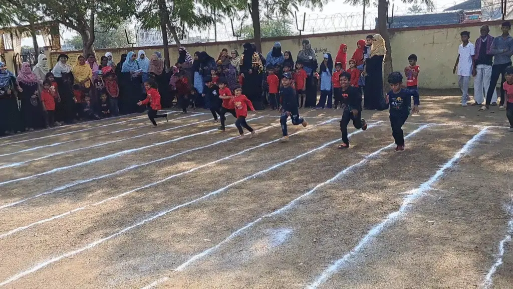 Every student has to participate in atleast two sports. Practice sessions are held before the actual matches. The air is filled with energy and every house is focussed on winning the tournaments. Kabaddi is the most liked game. Other games include Kho-Kho, Running Races, Sack Races, Baloon balance races and many more. Parents just love to see their child participating and they along with their house co-students cheer them.